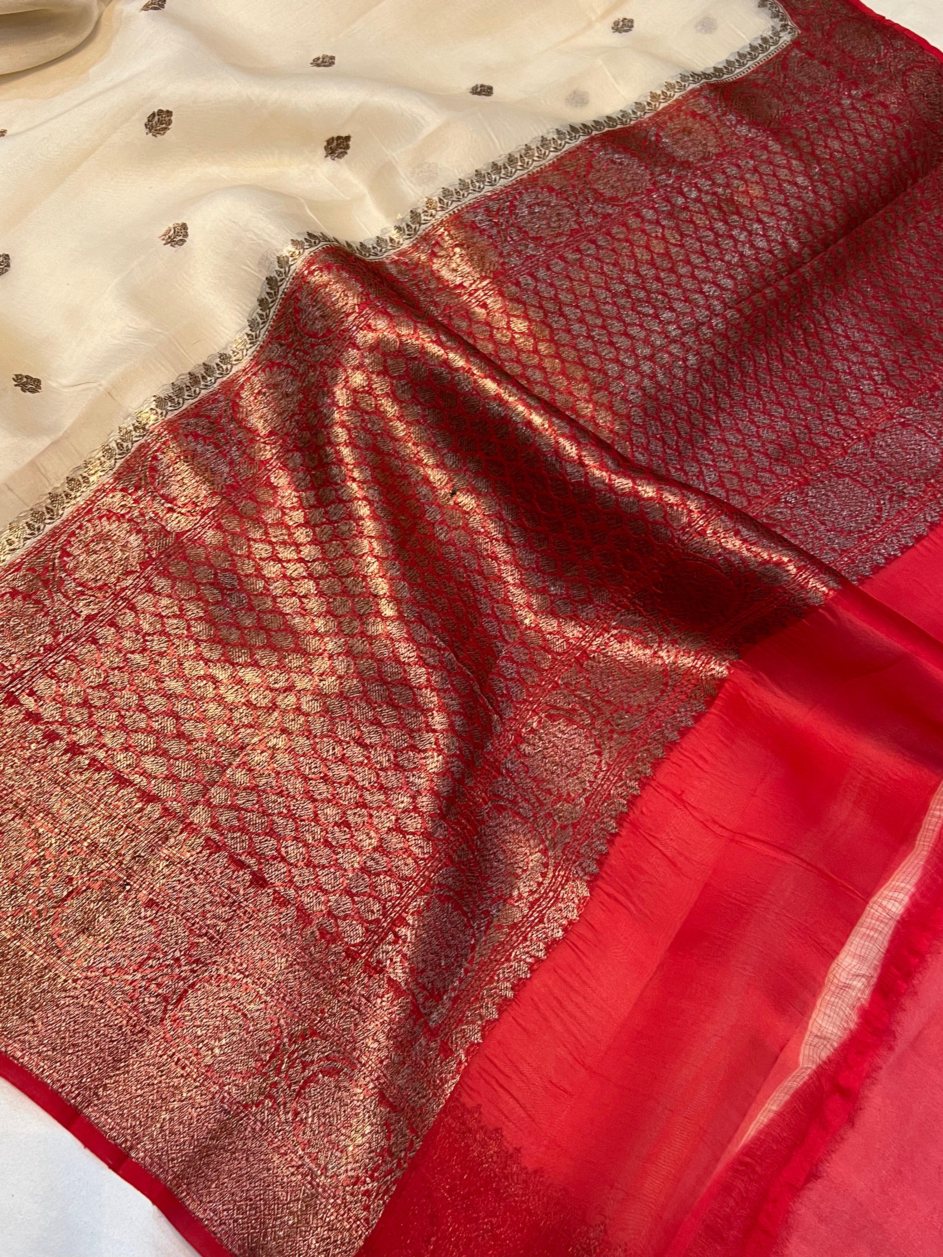 - Color - An enchanting Beige with scintillating red palla and border.