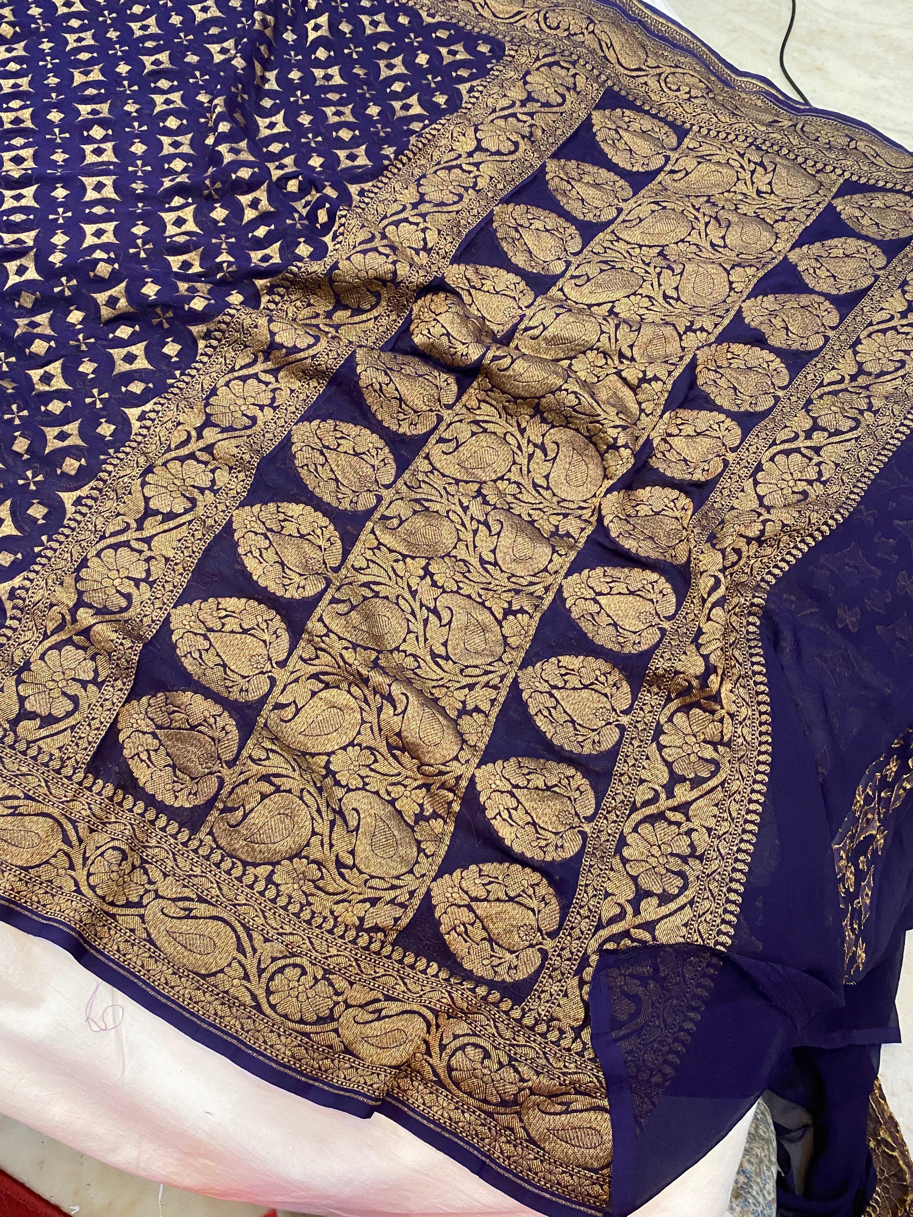 Navy Blue Pure Banarasi Khaddi Georgette Saree