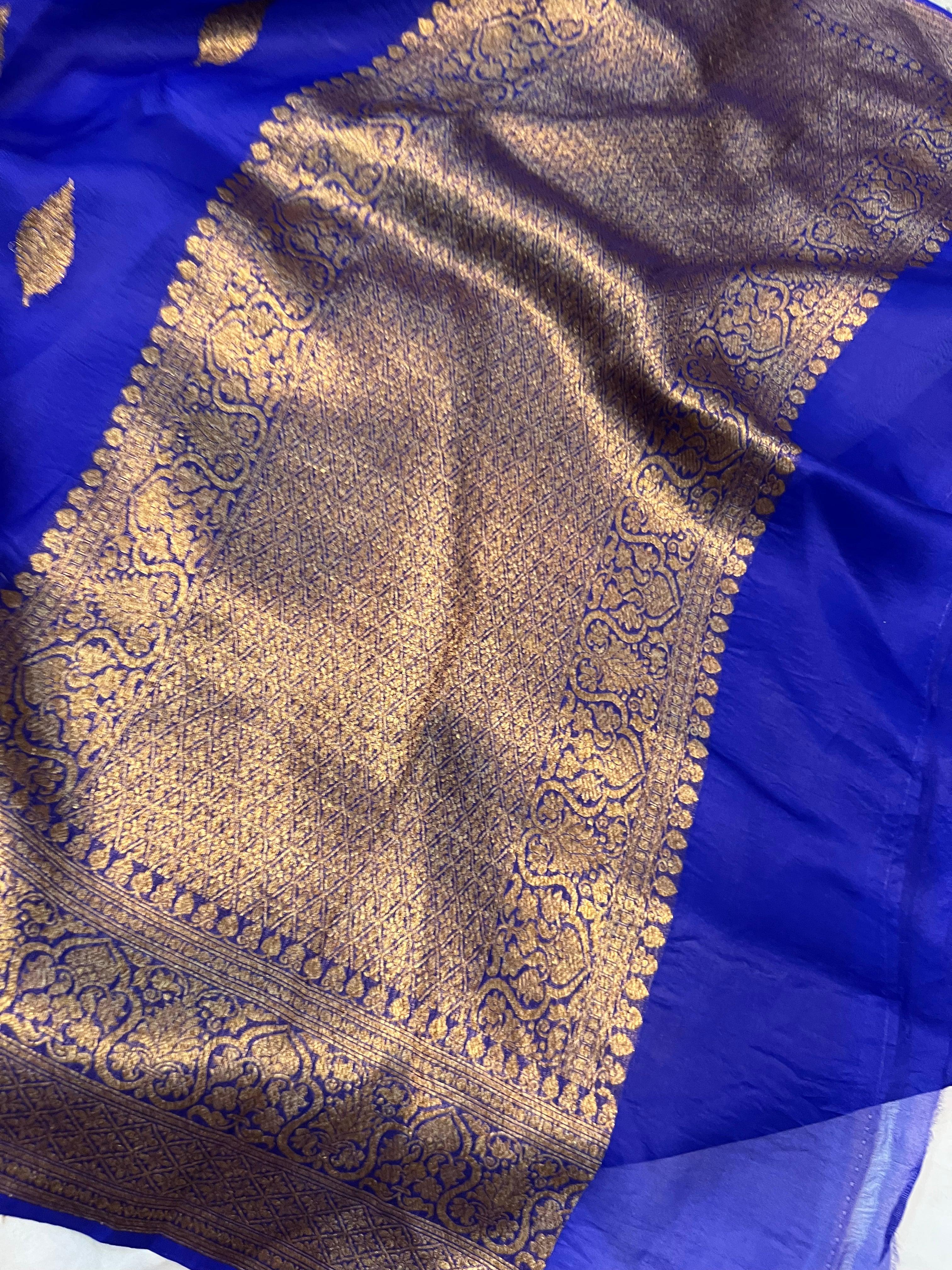 Royal Blue Banarasi Handloom Kora Silk Saree