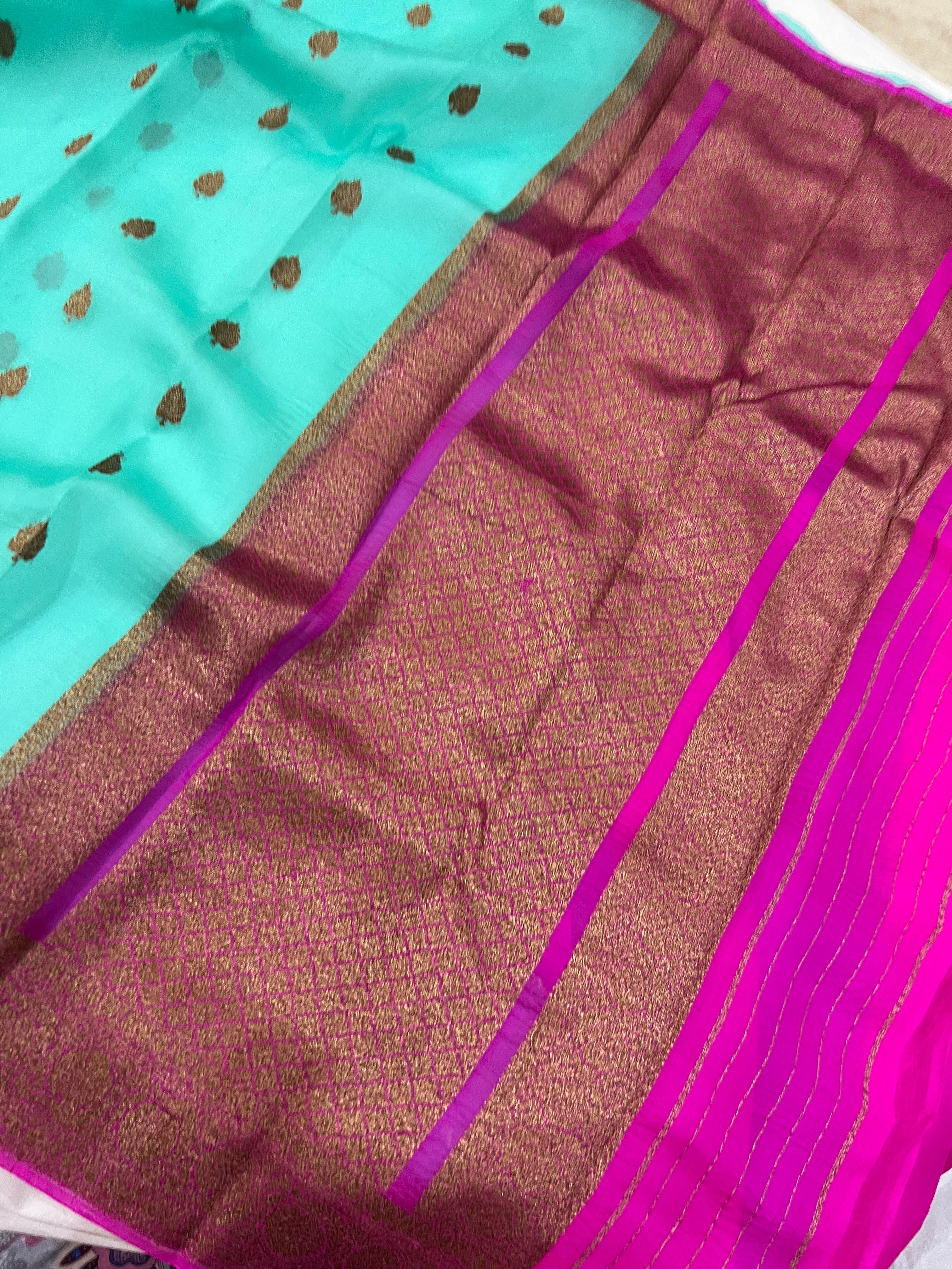 Sea Green Banarasi Handloom Kora Silk Saree